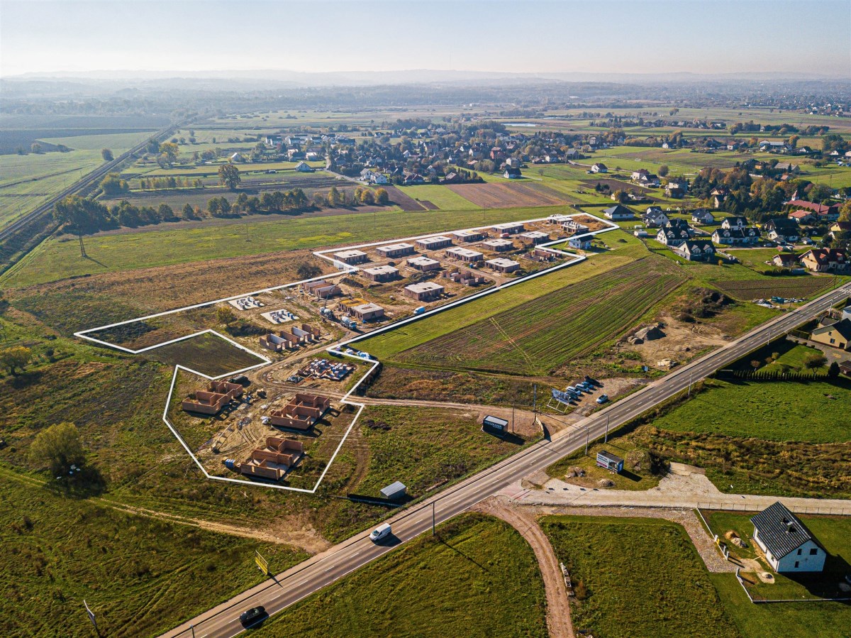 Mam przyjemność zaprezentować dom w zabudowie szeregowej, który oddany będzie w stanie deweloperskim o powierzchni użytkowej 78,82 m2 z czterema pokojami . Położony jest w zachodniej części miejscowości Niepołomice w spokojnym i zielonym miejscu. Inwestycja jest w trakcie budowy, która podzielona jest na 6 etapów. Na chwilę obecną w realizacji mamy początek etapu 4, który obejmuje ściany konstrukcyjne 1 piętra, kominy, strop na 1 piętrze oraz pokrycie dachowe. Działka o powierzchni 1,5 ar jest płaska i w kształcie prostokąta. W sąsiedztwie wyłącznie niska zabudowa i dużo terenów zielonych. Jest to doskonałe miejsce dla osób ceniących sobie, malowniczą okolicę i szybki dojazd do Krakowa.