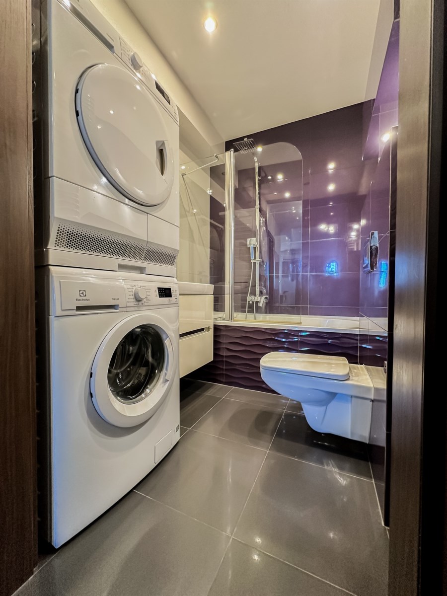 Mieszkanie gotowe do wprowadzenia – wysoki standard, nowoczesne meble w zabudowie kuchennej, sprzęt AGD (zmywarka, lodówka, piekarnik), pralka i suszarka w cenie. Mieszkanie posiada klimatyzacje.