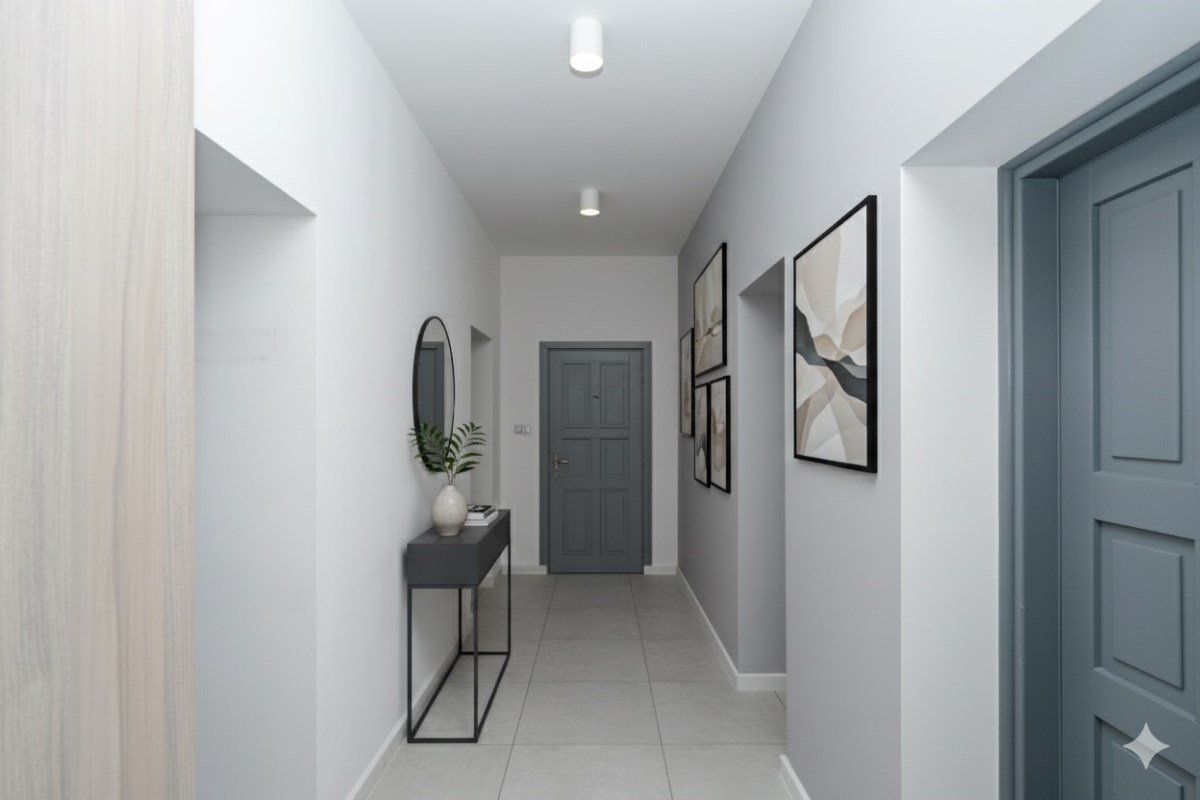 – Wysokość 3,5 m: Gigantyczna wysokość sufitów potęguje wrażenie przestronności.