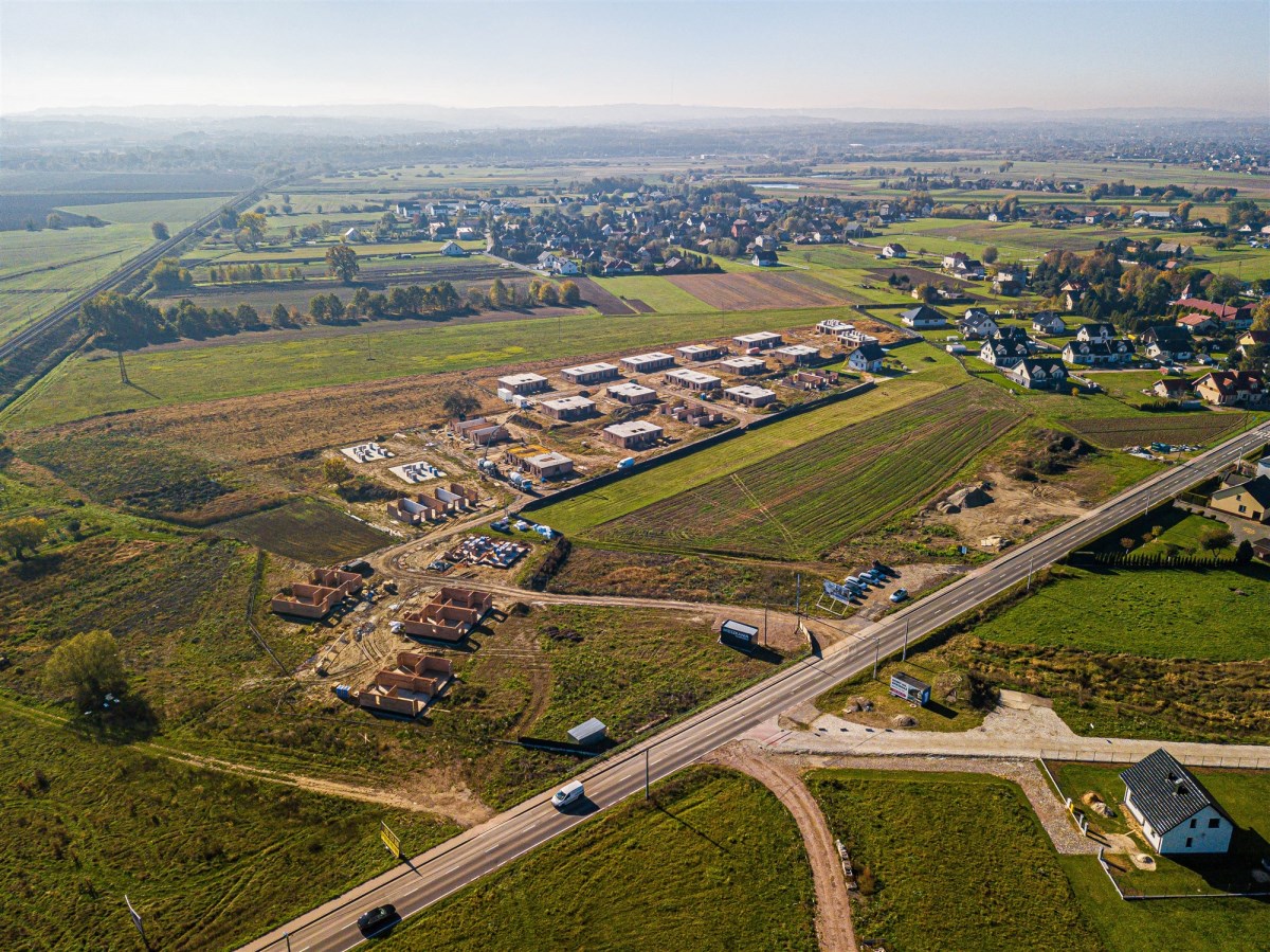 Mam przyjemność zaprezentować mieszkanie na parterze, które oddane będzie w stanie deweloperskim o powierzchni użytkowej 54,93 m2 z 3-pokojami. Położone jest w zachodniej części miejscowości Niepołomice w spokojnym i zielonym miejscu. Inwestycja jest w trakcie budowy, która podzielona jest na 6 etapów. Na chwilę obecną w realizacji mamy początek etapu 4, który obejmuje ściany konstrukcyjne 1 piętra, kominy, strop na 1 piętrze oraz pokrycie dachowe. Działka o powierzchni 2,26 ar jest płaska i w kształcie prostokąta. W sąsiedztwie wyłącznie niska zabudowa i dużo terenów zielonych. Jest to doskonałe miejsce dla osób ceniących sobie, malowniczą okolicę i szybki dojazd do Krakowa.