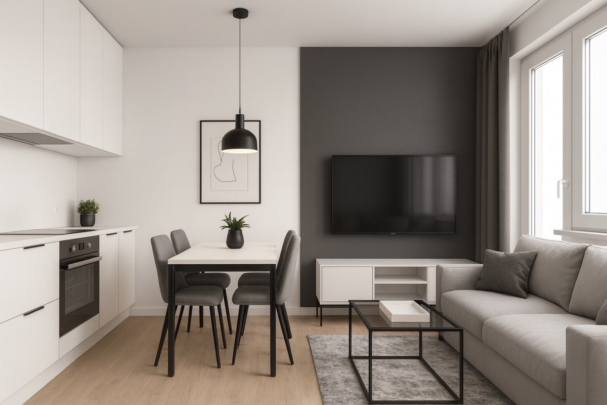 Salon z aneksem kuchennym – 25,09 m2